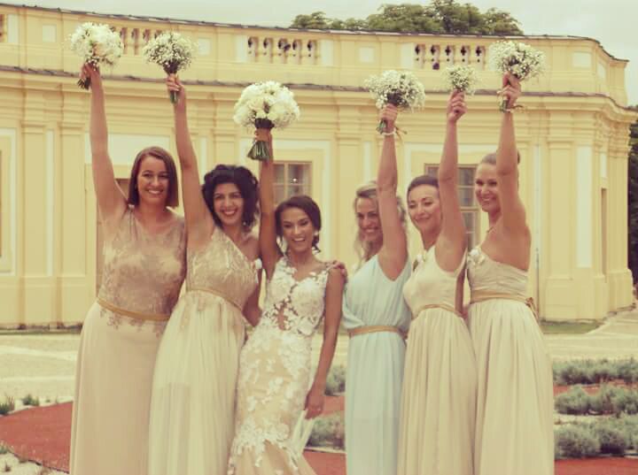 Krásné tělové béžové hedvábí v hlavní roli. Vždy jiné, zárověň stejně, vždy originální, vždy vystihující a vše na přání nevěsty a družiček.