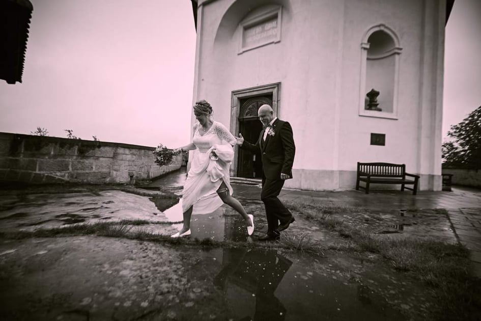 Jedna z časově velmi náročných svateb. A zároveň jedna z nejvíce přátelských a pro mě i nejklidnějších svateb. Díky dvěma zkouškám a 3hodinám cesty mezi námi, vznikly šaty z jemného šifonu, hedvábí a krajky v kombinaci krátké i dlouhé varianty, zasazené do prostředí starých amerických aut, jejichž láska k nim manžele provází celým vztahem. Děkuji nádherné nevěstě za možnost se po letech opět potkat a za šanci vytvořit tyto šaty.