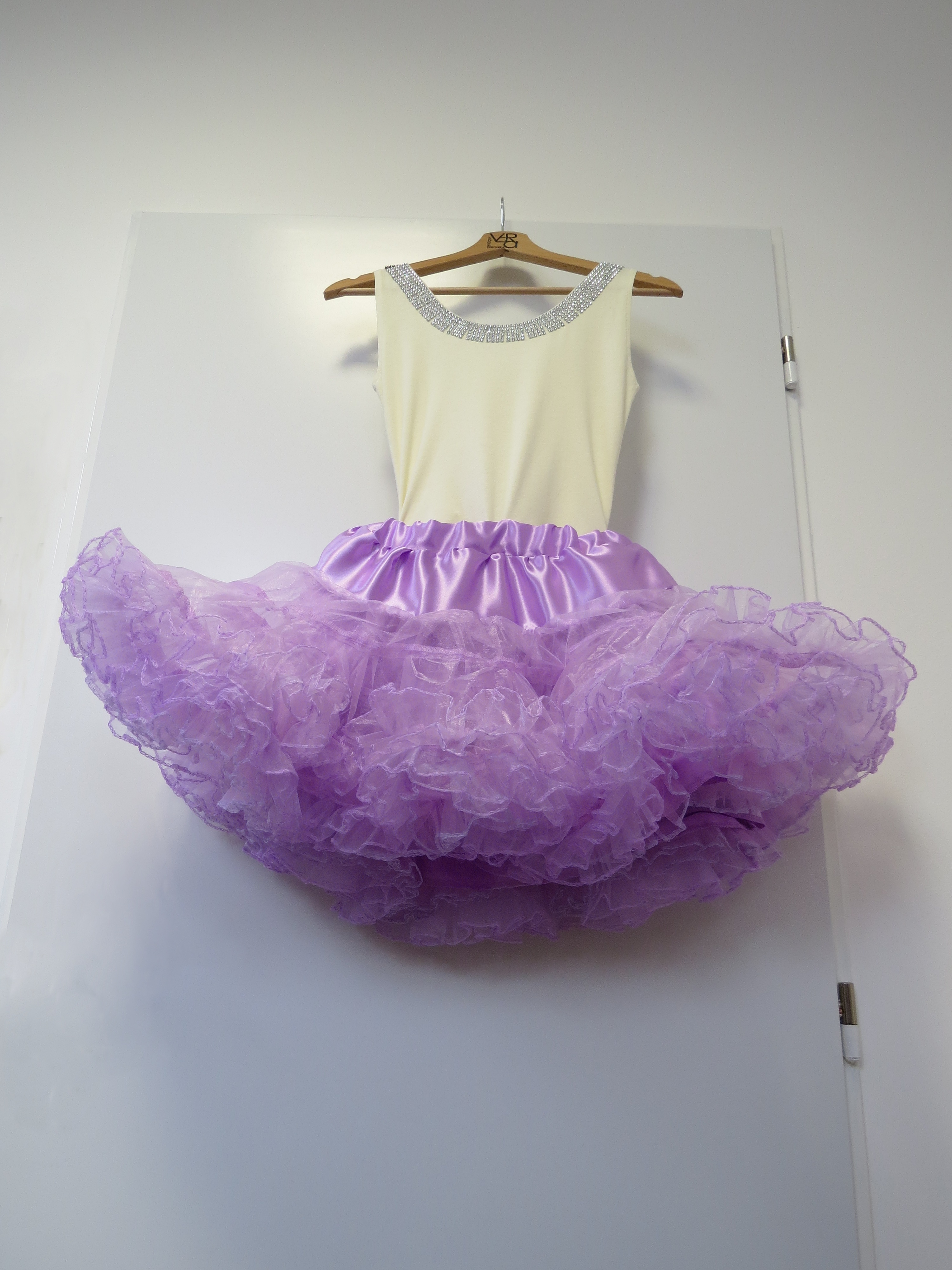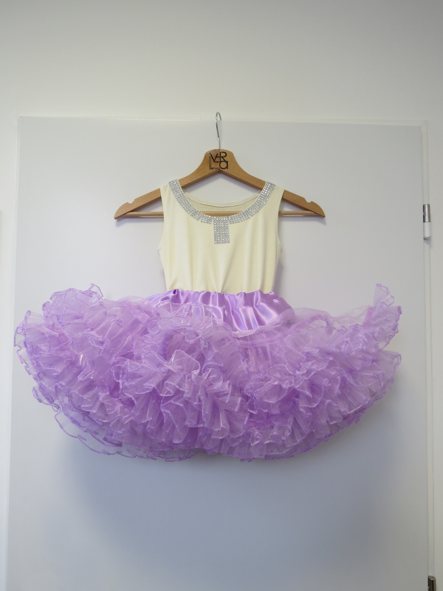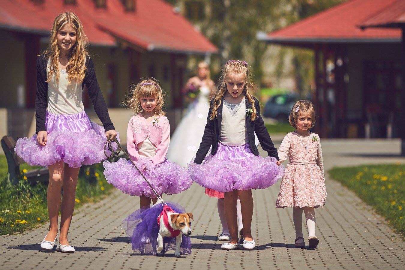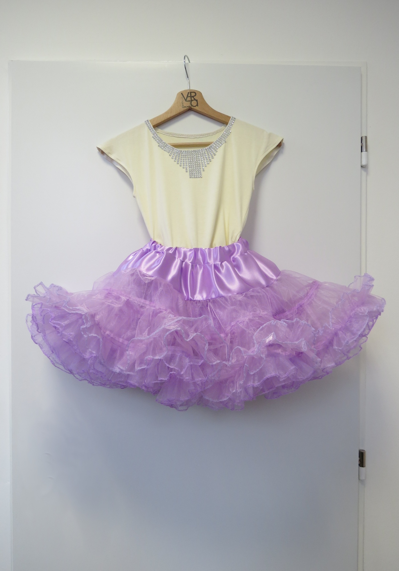 Modely byly celkem tři, pro malé družičky a jednu slečnu, přáním klientky byly hodně široké tylové sukně (známé jako tutu či dolly) a halenky, vše naladěné do fialové barvy a propojené se šaty nevěsty. Vznikly tedy tyto sukně, kde materiál jsme zvolily lehce pro tuto sukni netradiční a to organzu, díky tomu jsme vytvořily hodně široké sukně a přetvořily je na baletkovské dolly. Halenky jsme zvolily v nádechu barvy svatebních šatů a propojili díky použitému zdobení. Halenka každého modelu byla zvolena vždy jiná.