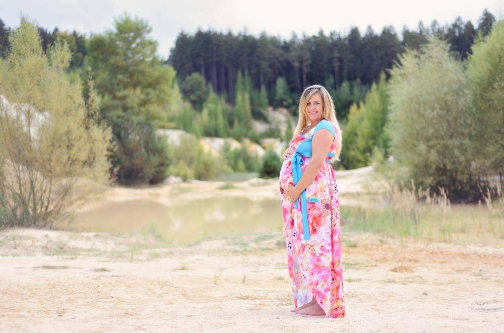I těhotenské mohou vypadat krásně. Proto vznikly jedny zavinovací, barevné a dlouhé pro naši klientku.