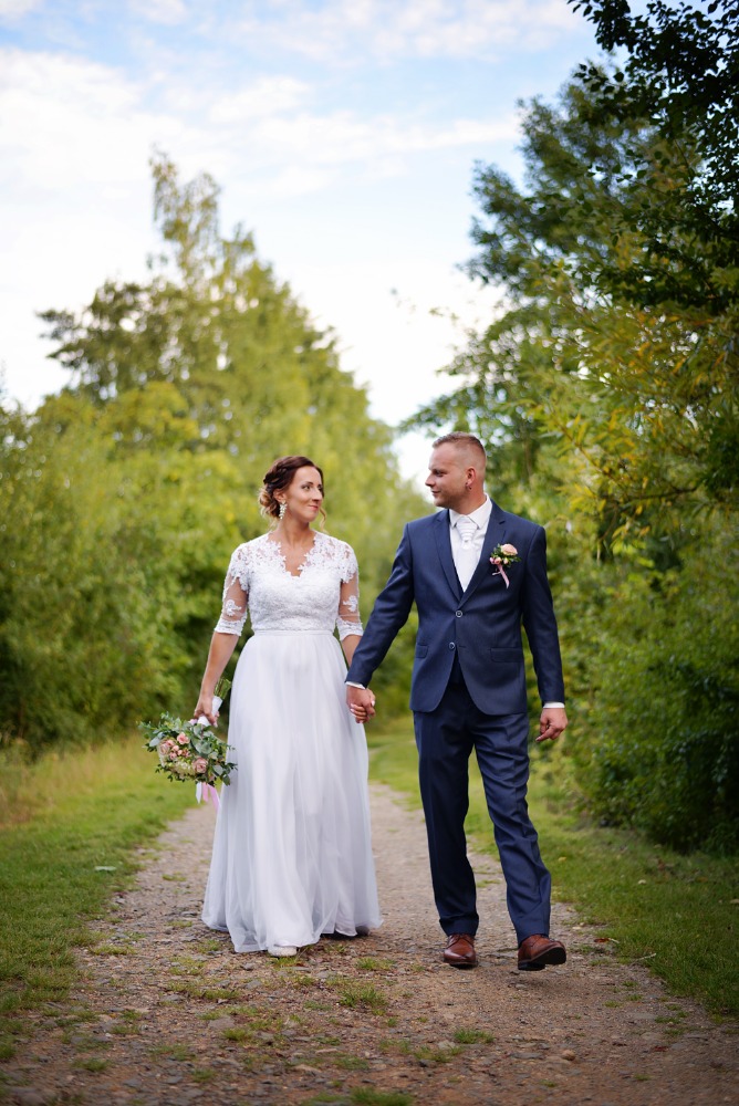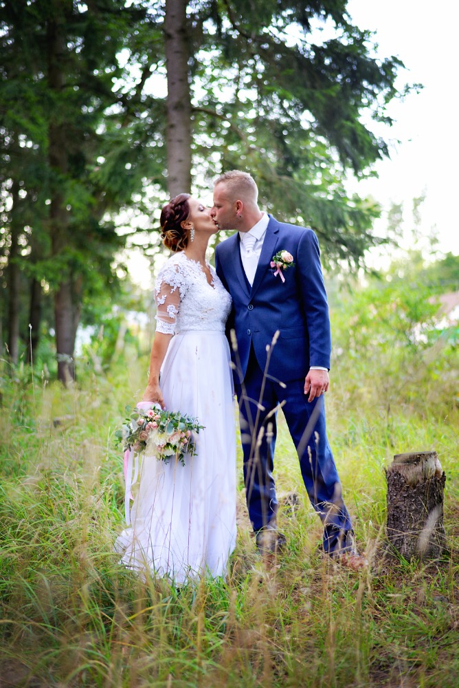Nádherná nevěsta s jasnou představou. S krajkou přímo pro ni, s velkým dolaďováním v dokonalost. S lehkostí šifonu, s hedvábným matem na krásném místě.