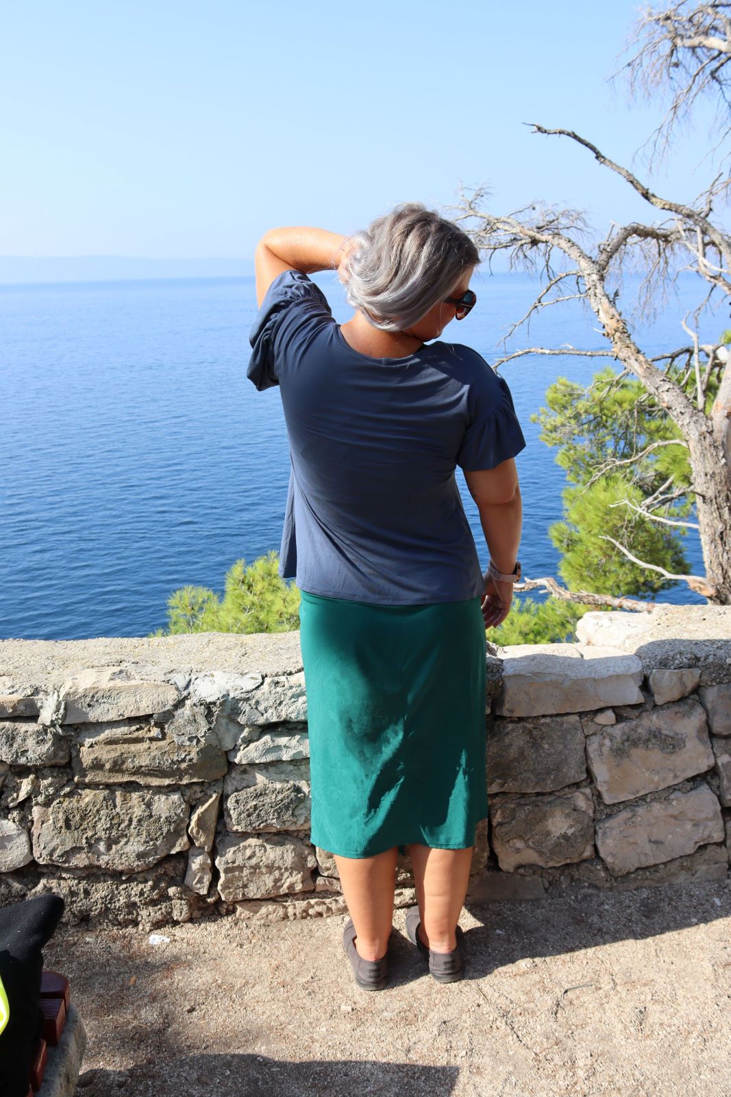 Díky kvalitnímu viskózovému materiálu je tričko příjemné na dotek a vhodné pro nošení během celého roku — v létě k šortkám nebo sukni, v přechodném období pod lehký svetr či sako. Každý kus šijeme na zakázku v našem ateliéru v České republice z materiálů pocházejících z Evropy. Tričko představuje kombinaci praktičnosti, pohodlí a autorského designu.